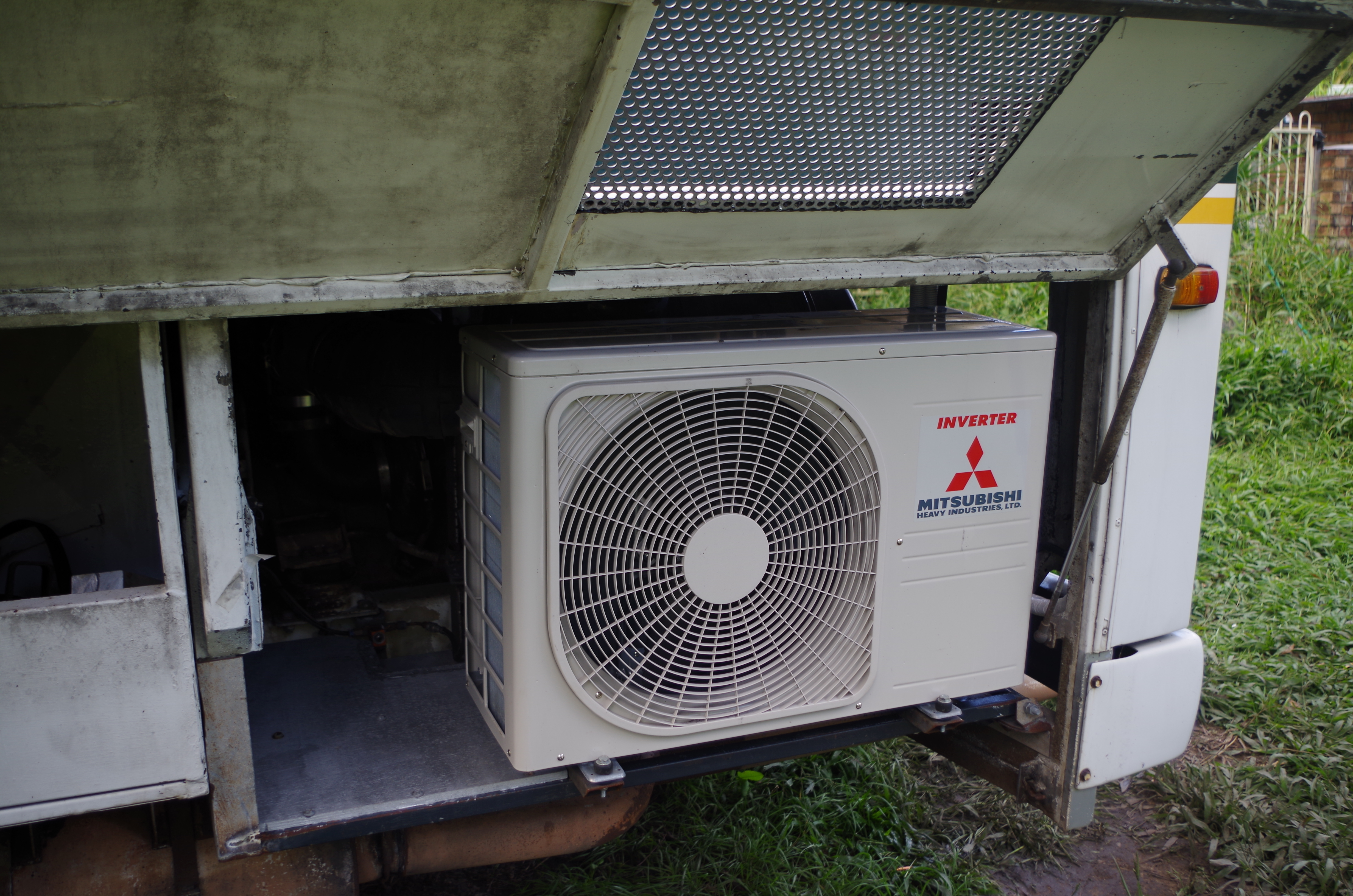 The Vents have been fitted to the side door of the Engine bay. The Air conditioning system is running & I am very happy with the installation, The unit is very quiet & will be selecting another Mitsubishi unit for the Living Area.